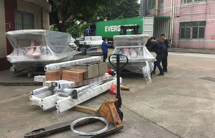 兩臺(tái)4磨頭玻璃直線磨邊機(jī)和兩臺(tái)切割機(jī)出口裝柜